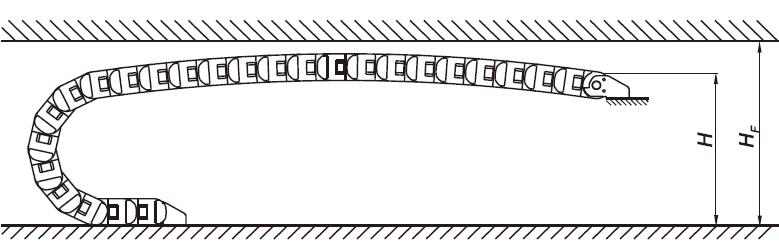 拖鏈預(yù)應(yīng)力原理圖, HF = 實(shí)際安裝高度