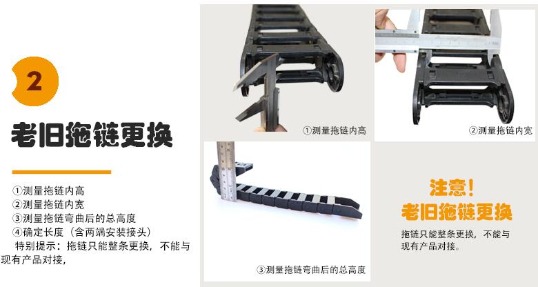 | 拖鏈型號 | 內(nèi)高X內(nèi)寬 | 外高X外寬 | 彎曲半徑 | 樣式 | 接頭尺寸 |