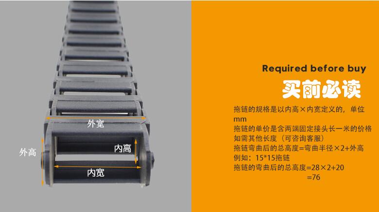| 15系列塑料拖鏈規(guī)格表 | |||||